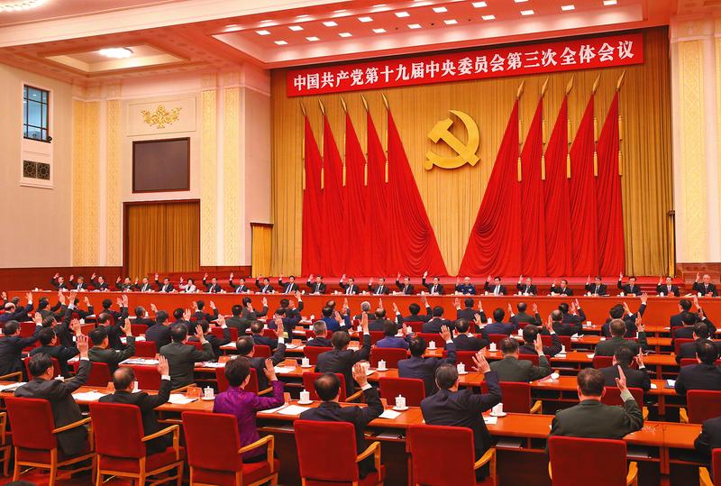 中国共产党第十九届中央委员会第三次全体会议,于2018年2月26日至28日在北京举行。中央政治局主持会议。 记者 姚大伟摄