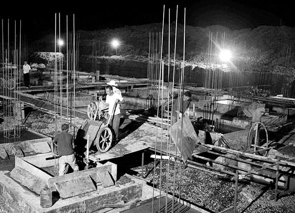 建筑工地加班施工,挑灯夜战,工人合法权益难以保证