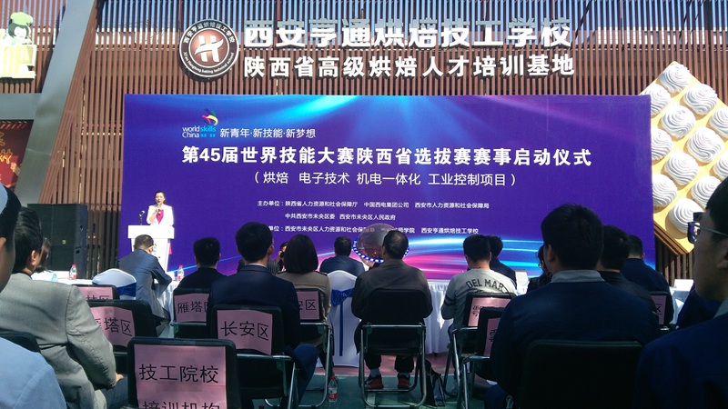 4月9日上午,第45届世界技能大赛烘焙、电子技术、机电一体化、工业控制项目陕西省选拔赛赛事在西安亨通烘焙技工学校正式启动。