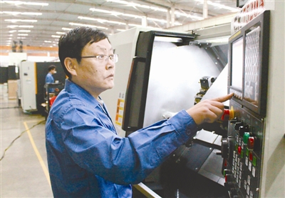 图为麻建军正在操作数控机床。(记者 曲欣悦 摄)