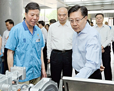 5月28日至30日,全国人大常委会副委员长、中华全国总工会主席王东明,就深化工会改革、产业工人队伍建设改革等到我省进行调研督查。全总党组书记、副主席、书记处第一书记李玉赋一起参加调研;省委副书记、省长刘国中,省委副书记贺荣,省人大常委会副主任刘晓燕分别陪同调研督查。省总工会党组书记、主席白阿莹全程陪同调研。(本组图片由记者刘强和省总工会提供 )
