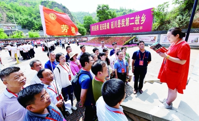 在梁家河,安徽省劳模尚蓉情不自禁地拿出《梁家河》向大家大声诵读。尚蓉说:“今天能来到梁家河,深刻感受习近平总书记的七年艰苦知青岁月,我感到万分激动。带领30名团员诵读《梁家河》,就是要让大家深切感受习总书记带领群众过美好生活的坚定信念。我为自己是一名共产党员深感自豪,在今后的工作中,我会更加努力,时刻发挥劳模的示范引领作用。”
