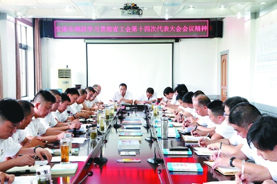 近期,中国铁路西安局集团公司安康车辆段充分利用月度例会、班组政治理论学习会等形式,组织干部职工认真学习贯彻省工会十四大精神。周道刚 李青 摄