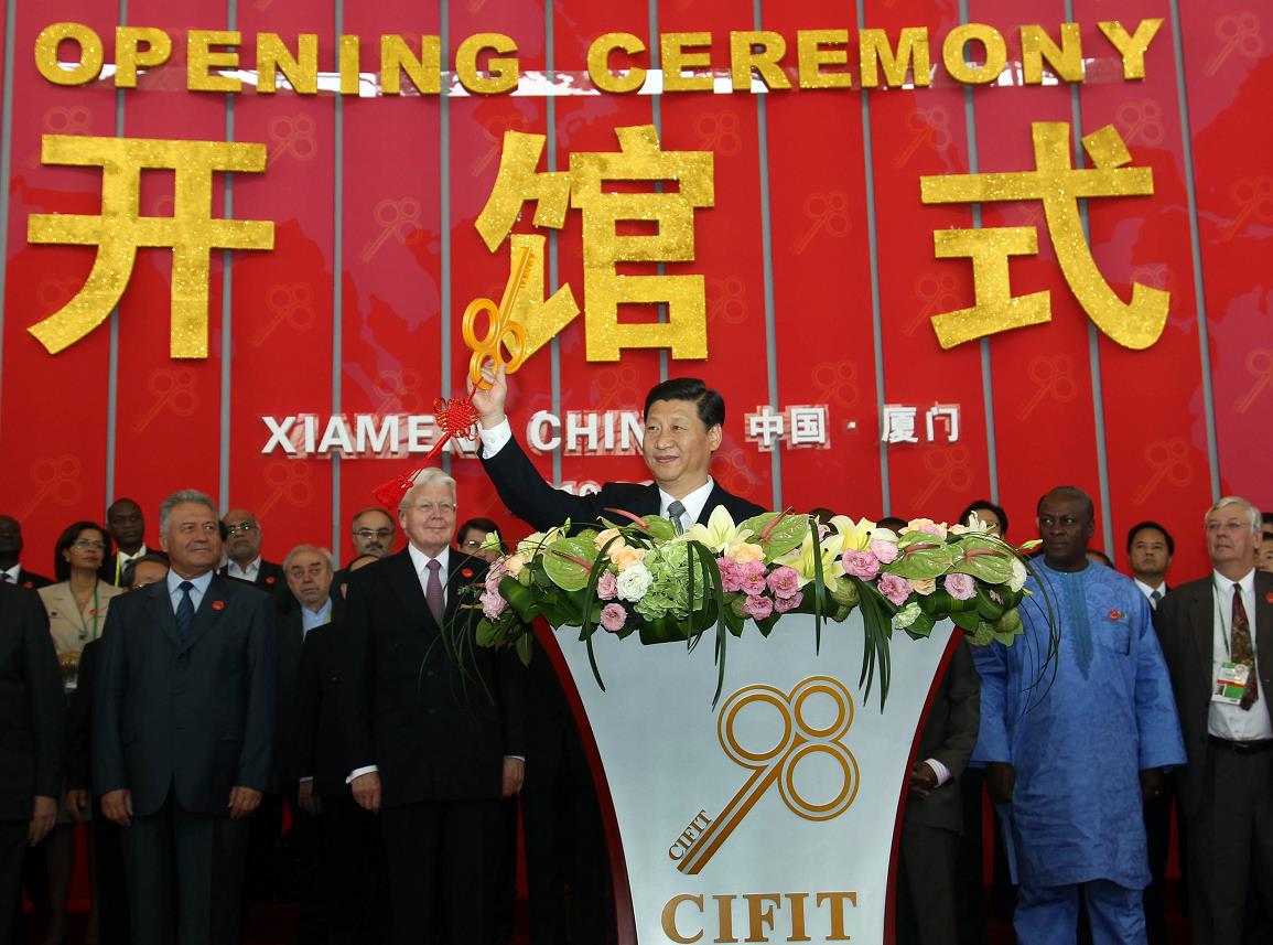 2010年9月8日,第十四届中国国际投资贸易洽谈会在厦门正式开幕,习近平出席开馆式并为展馆开馆。新华社记者 兰红光 摄