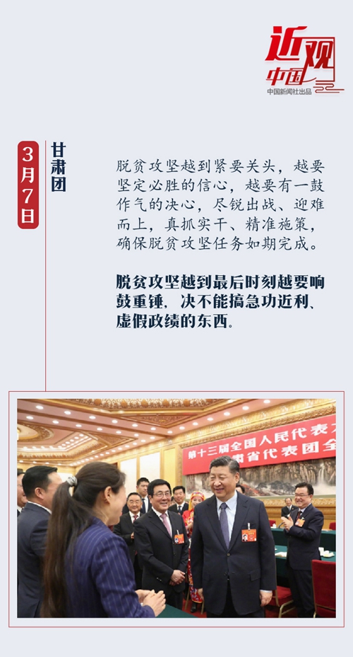 在甘肃团,他的发言直指“虚假式”脱贫、“算账式”脱贫、“指标式”脱贫、“游走式”脱贫等问题,他表示,要高度重视并坚决克服,提高脱贫质量,做到脱真贫、真脱贫。