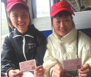 2月21日,来自甘肃省陇南市武都区的31名务工人员走进汉中火车站。在车站工作人员的带领下,他们乘坐K768次列车前往广州。图为务工人员向记者展示从汉中前往广州的车票。 记者 苏怡摄