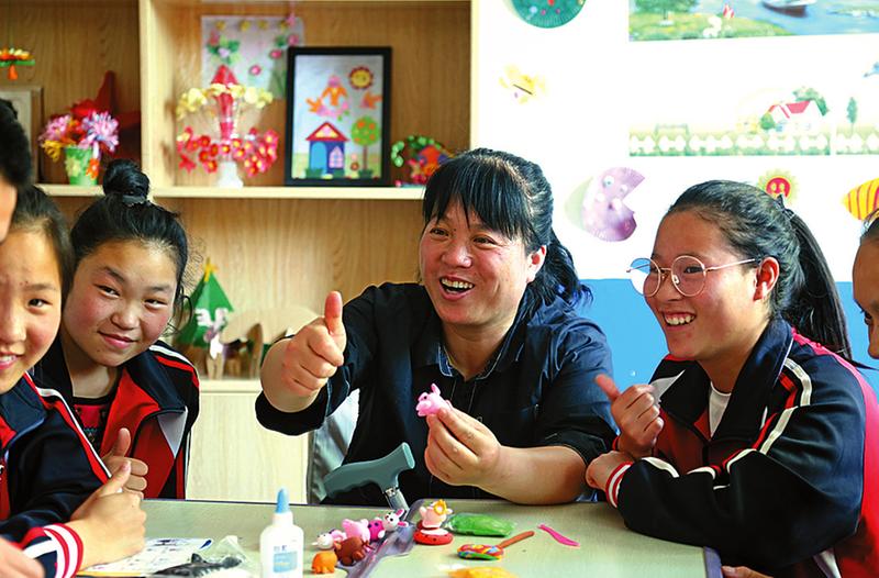 4月18日,渭南市临渭区曙光特殊教育学校校长张小侠在给孩子们上手工课。 记者 肖晓良摄