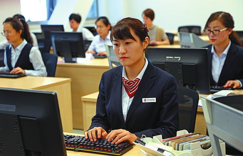 4月18日,中国银行陕西省分行营业部综合柜员李莉在进行核心系统业务技能操作。 记者 肖晓良摄