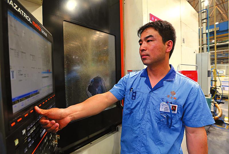 4月18日,法士特壳体三车间旋压组加工中心操作工李锋在生产线上工作。 记者 肖晓良摄