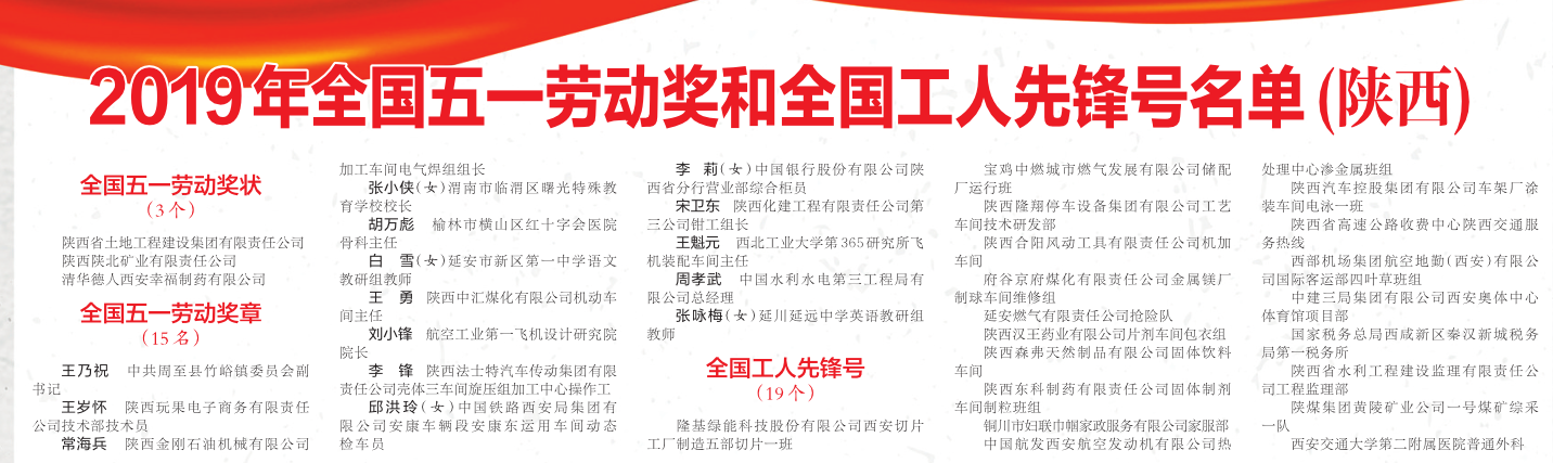 2019年全国五一劳动奖和全国工人先锋号名单(陕西)