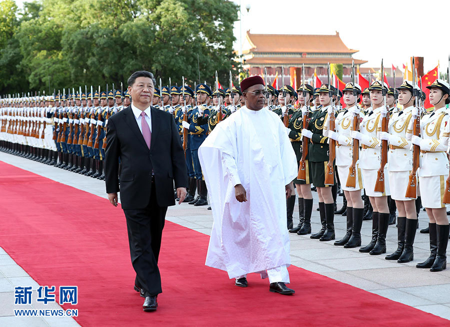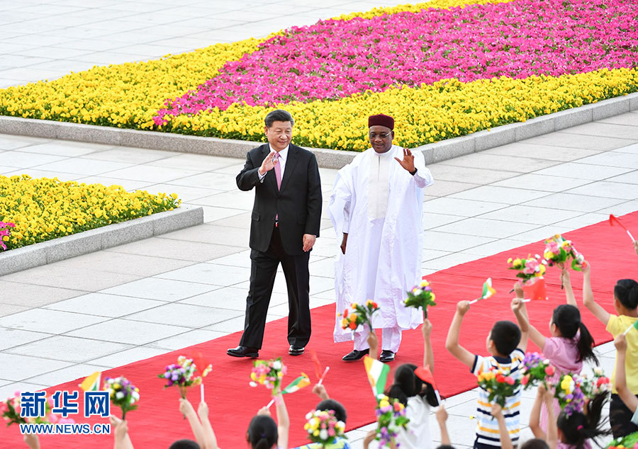5月28日,国家主席习近平在北京人民大会堂同尼日尔总统伊素福举行会谈。这是会谈前,习近平在人民大会堂东门外广场为伊素福举行欢迎仪式。 新华社记者 刘卫兵 摄