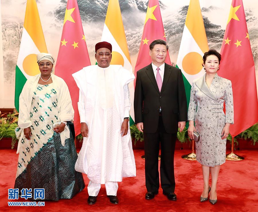 5月28日,国家主席习近平在北京人民大会堂同尼日尔总统伊素福举行会谈。这是习近平和夫人彭丽媛同伊素福夫妇合影。 新华社记者 庞兴雷 摄