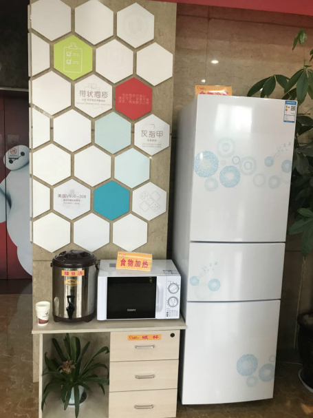 在西安市含光门外一家民营医院一楼大厅的"工会爱心驿站"里,有桌椅、图书、微波炉、可以冷藏食品的冰箱等设施和物品,附近的环卫工们,可以在驿站里免费休息和使用。