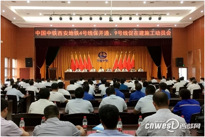 中国中铁西安地铁党旗红、西安地铁杯劳动竞赛仪式结束后,随之召开了9号线施工生产推进会、4号线保开通动员大会,中国中铁副总裁、总工程师刘辉,西安地铁办主任、西安市地下铁道有限责任公司总经理宋扬等领导对9号线促在建,4号线保开通工作提出了要求。