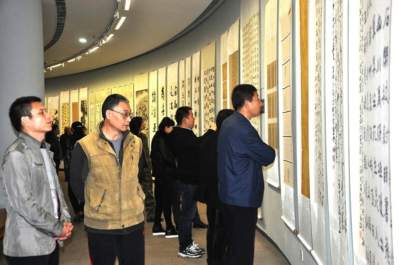 近年来,陕西职工文化建设取得了丰硕成果,涌现出一大批“工”字号的职工文化品牌。本次展出的作品既抒发了广大职工对陕西“追赶超越”伟大事业的真情,更是献给党的十九大的一份厚礼。受邀职工纷纷表示,要通过勤奋劳动、诚实劳动、创新劳动实现自己心中的“中国梦”,争做新时期“最美劳动者”。图为受邀职工品鉴优秀书法作品。(记者 凌旎)