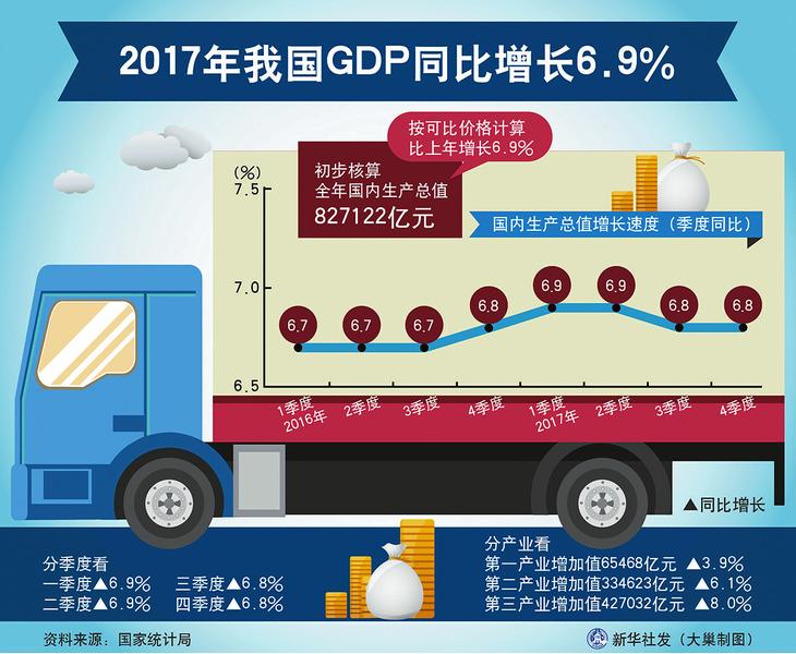 6.9%的增速、1.6%的通胀、超过1300万人的城镇新增就业……18日公布的2017年中国经济“年报”,向世界亮出一份稳中向好、好于预期的成绩单。