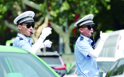 西安市西华门十字路口,交警在车水马龙的十字路口维持着交通秩序,他们身穿反光背心伫立在52℃的地面和滚滚车流中,汗水浸透了警服。广大交警的辛勤付出,换来的是交通的顺畅和市民的平安出行。
