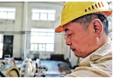 入伏以来,宝鸡地区持续高温,宝鸡机车检修厂干部职工不惧高温,精心检修每一台机车,全力确保暑运优质供车。图为近日,该厂轮对车间职工挥汗如雨检修机车部件。赵选团 刘明祥 摄