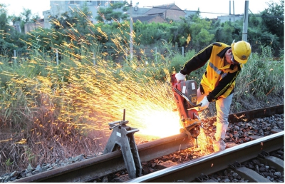 入伏的陕北,地表面昼夜热浪炙烤。7月24日凌晨6点,绥德工务段综合机修车间负责钢轨焊接的工长陈海军和他的工友,正在对太中线宁条梁站内的一处伤损钢轨进行紧急更换。