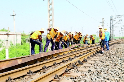 近日,渭北地区持续高温,中国铁路西安局集团有限公司阎良工务段加强作业轨温施工管控,严格作业标准化制度的落实。