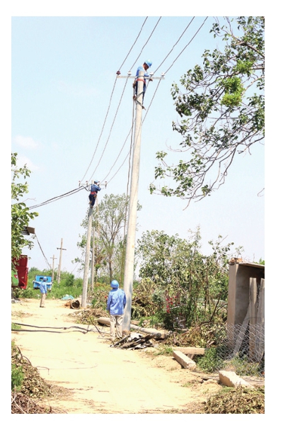 国网西安供电临潼公司职工不惧高温酷暑,鏖战60多个小时,终于使得雨金、交口地区受灾损毁高压线路于7月28日全部恢复供电。潘世策 摄