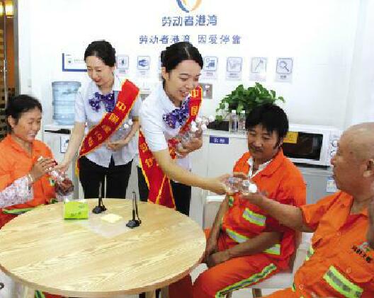 “这天慢慢凉了,有个微波炉中午吃饭就不用发愁咧!”“你看这还有个冰箱,夏天用着也美得很。”“这还有个医药箱,咱干活啥的手烂了还能包扎一下,真好!”8月30日,几名环卫工在建设银行西安紫薇田园都市支行的劳动者港湾里小憩闲聊起来,这里不仅有空调、微波炉、热水器,还有应急医药箱、工具修理箱、书籍报刊,为在户外工作的劳动者提供了方便。