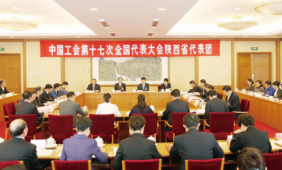 10月22日下午,北京京西宾馆二楼会议室内气氛热烈,发言踊跃。出席中国工会十七大的陕西省代表团在这里召开第二次全体会议,学习王沪宁同志代表党中央的致词,讨论审议王东明同志所作的工作报告。中华全国总工会党组书记、副主席、书记处第一书记李玉赋出席。陕西省代表团团长、省人大常委会副主任、省总工会主席郭大为主持会议并讲话。