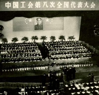 1957年12月2日至12日,中国工会第八次全国代表大会在北京举行。大会代表989人,候补代表100人,代表了全国1360万名工会会员。毛泽东、刘少奇、周恩来、朱德、邓小平等出席开幕式。刘少奇代表中共中央向大会致词。