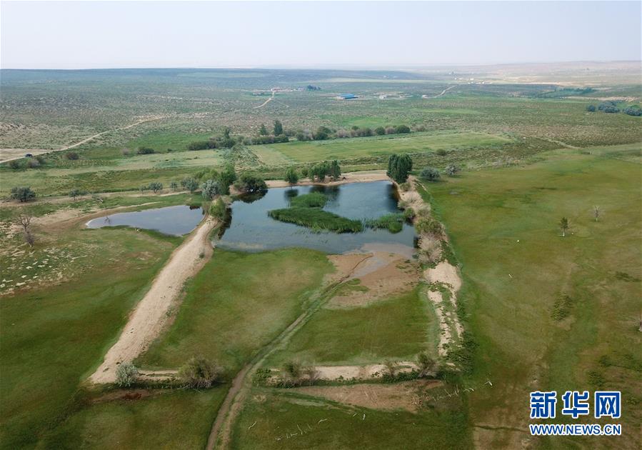 内蒙古杭锦旗沙日召嘎查牧民白音道尔计治理过的库布其沙漠(7月31日无人机拍摄)。记者邢广利摄