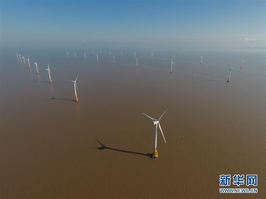 俯瞰上海东海大桥海上风电场(2017年11月2日摄)。 记者 丁汀 摄