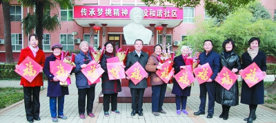 一束束鲜花,一副副春联。慰问组一行向老姐妹送鲜花、送福字、送春联,祝她们新年快乐,健康长寿!