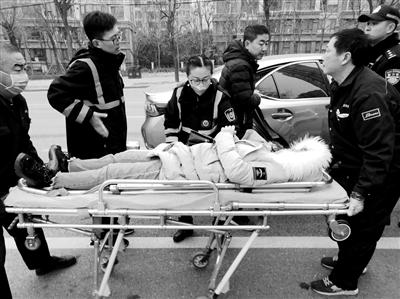 在车祸现场,一名32岁的女士被一辆轿车的后视镜挂倒,秦沛和护士张翠翠提着急救箱跑到伤者面前,首先检查伤者四肢能否活动?意识是否清楚?伤者说她感到胸闷和腰腹部不适,这时担架工已经推来了转运伤者的医用平板车,让伤者躺在上面。在救护车上,护士又拿出血压计测量血压。这时,救护车拉响了警笛向西安市第九医院飞奔。到了医院后,秦沛向急救科医生进行了交接,西安市急救科医生立即实施检查。医生说,有时病人伤到哪里,病人并不清楚,需要医生一丝不苟地检查,从头到脚不放过任何一个部位……(记者 张毅伟)