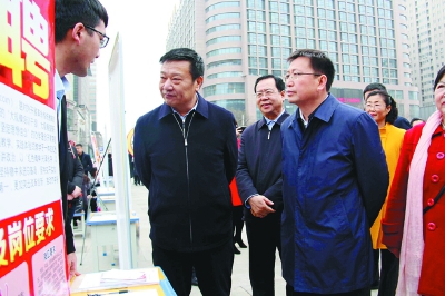 3月2日上午,由宝鸡市总工会主办的2019年陕西省“就业援助月”大型招聘会宝鸡分会场在该市行政中心广场举行。宝鸡市委副书记尹清辽,宝鸡市人大常委会副主任、市总工会主席曹海芹察看了招聘会现场。