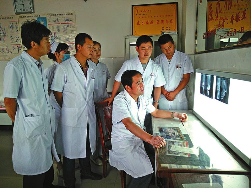 榆林市横山区红十字会医院骨科主任胡万彪和同事进行会诊。 资料照片
