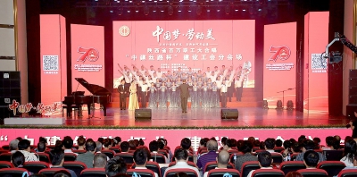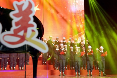 《咱们工人有力量》《我和我的祖国》《共和国选择了你》等一首首耳熟能详的歌曲,让全场观众齐声高唱并报以热烈掌声。由中国建筑西北区域总部(中建丝路)50名农民工组成的合唱团,用他们最真挚的演唱,为新中国成立70周年献上最美好的祝福。